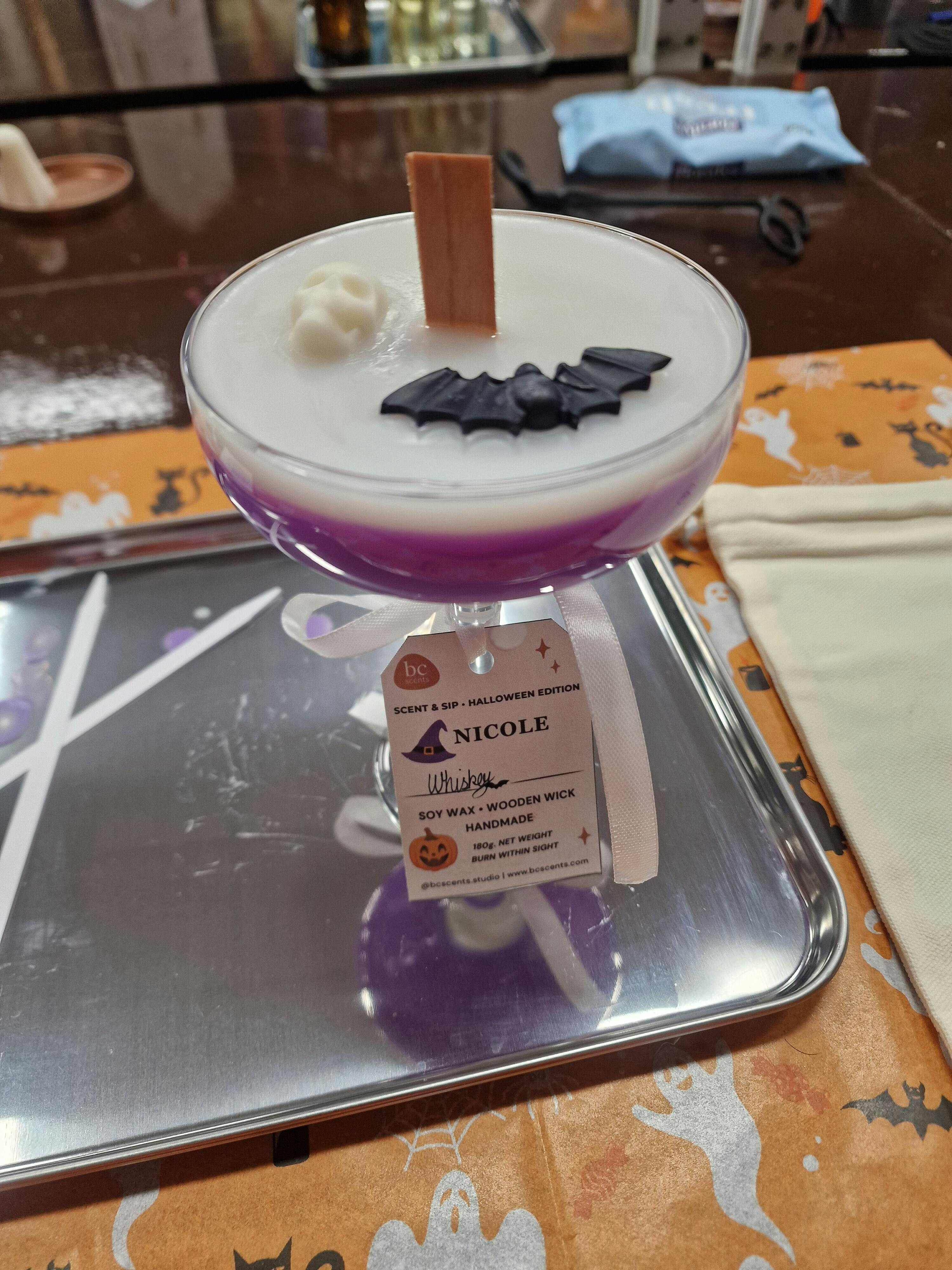 Nicole D. The Halloween themed class was amazing! I was late to the class but all the girls were super helpful to catch me up and help me to create my candle. Everyone working for the event was very friendly and it created a really nice atmosphere. Making the actual candle was so fun and I would reccommend the class to anyone as it was really enjoyable and the end product is really unique!